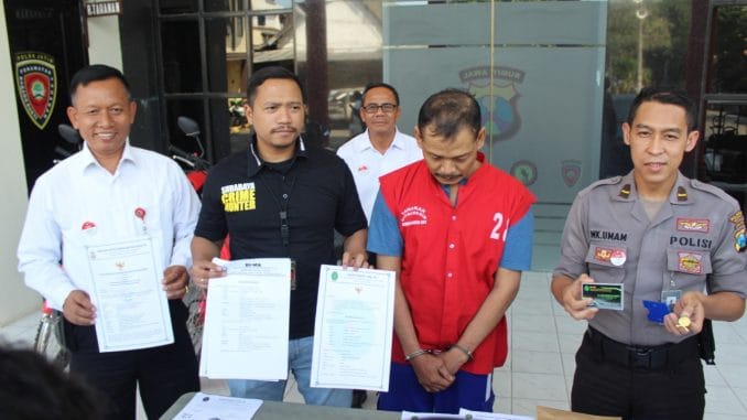 “Kami mengamankan pelaku dan menyita barang bukti berupa berkas-berkas Negara palsu, menurut pengakuan tersangka semua dokumen dan PIN serta kartu nama dibuat sendiri.”