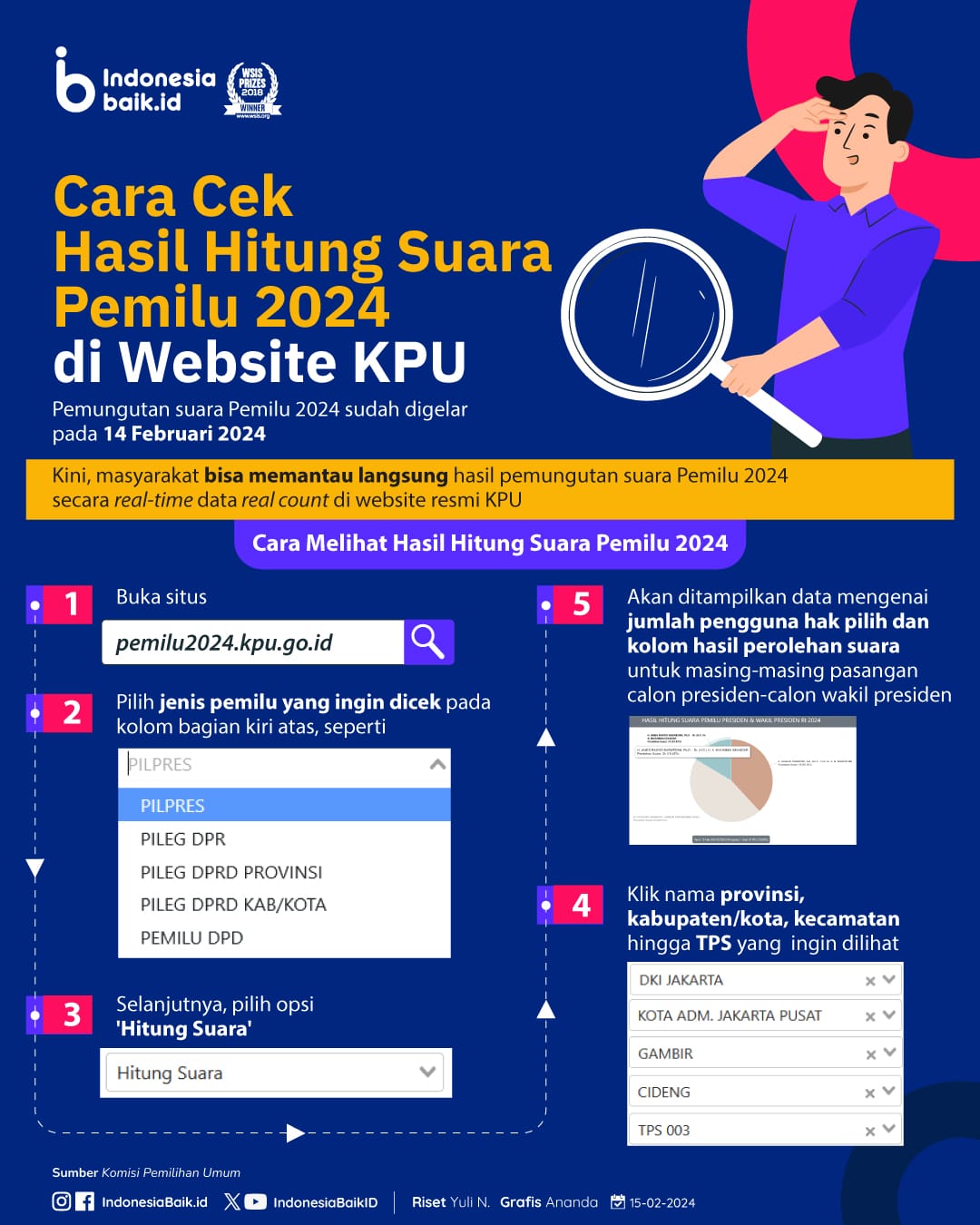 Pilih jenis pemilu yang ingin dicek pada kolom bagian kiri atas, seperti