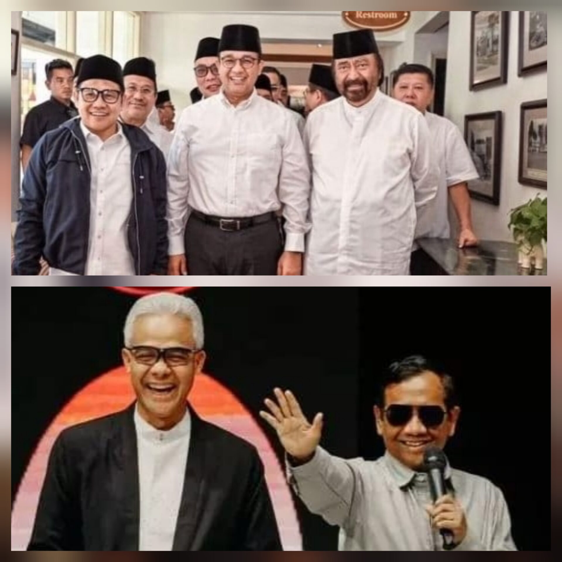 Bila Pemilu harus diulang seiring penolakan oleh banyak elemen, ada sinyalemen Prabowo-Gibran plus Demokrat akan berkoalisi dengan pasangan Anis-Muhaimin akan menguat , seiring pertemuan Jokowi dan Surya Paloh di Istana Merdeka pada Senin (19/2) dan akan bertarung dengan pasangan Ganjar Mahfud MD.