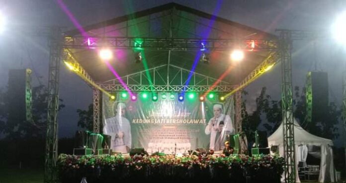 Meski diguyur hujan gerimis, jamaah tetap menikmati Sholawatan bersama Grup Hadroh Al Hidayah dari Kedungjati hingga acara selesai. (Aji)