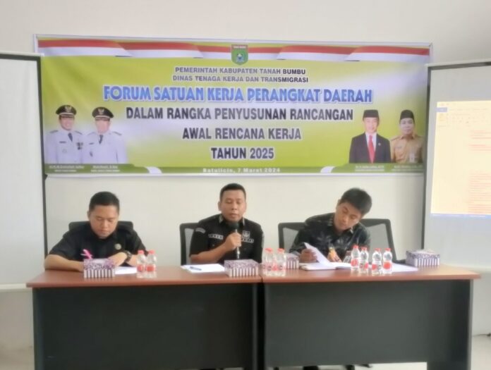 Infosatu.cloud – Dinas Tenaga Kerja dan Tranmigrasi Tanah Bumbu menggelar sosialisasi pembahasan Penyempurnaan Rancangan Awal Rencana Kerja (Renja) tahun 2024, Kamis (07/3/24) di Ruangan Rapat Dinas Tenaga Kerja dan Tranmigrasi Tanah Bumbu, Kaliamatan Selatan