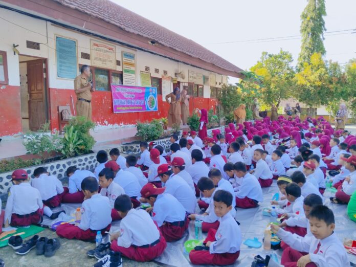 Infosatu.cloud – Hari Gizi Nasional  Indocement bekerja sama dengan tim puskesmas Serongga Pemberian Makanan Tambahan (PMT) untuk anak SD, Kamis (7/3/24) di Kecamatan Kelumpang Hilir, Kotabaru, Kalsel.