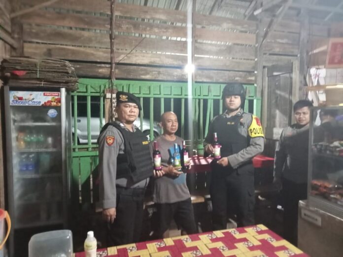 “Kami menyita sedikitnya empat botol minuman keras merek anggur merah merk orang di warung AB. Yang bersangkutan menjual minuman keras secara tersembunyi.