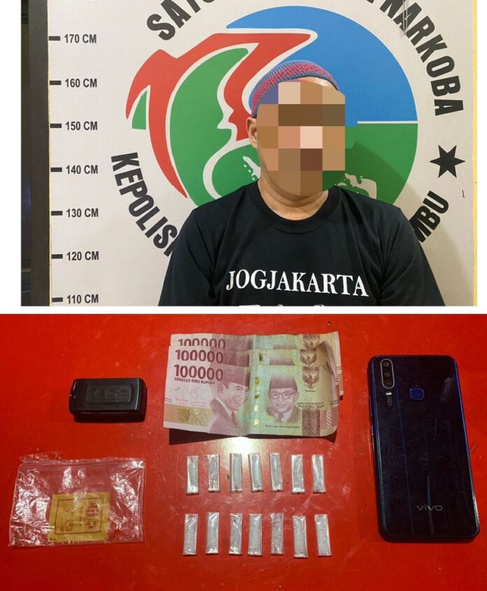 “Dari tangan tersangka, ditemukan barang bukti 14 paket narkotika jenis berat 2,67 gram, 1 buah timbangan dan beberap barang buktinlainya.