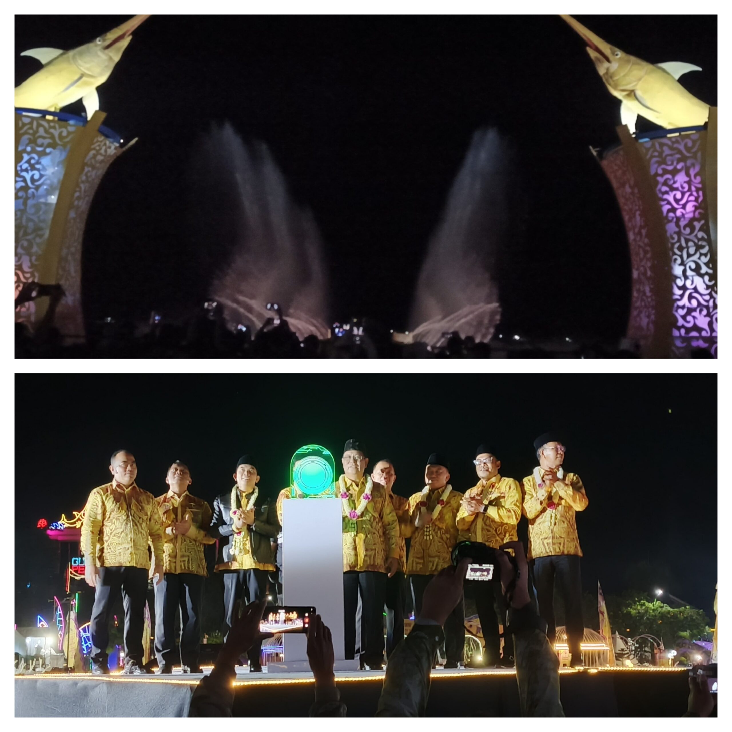 Infosatu.cloud – Gubernur Kalimantan Selatan H.Sahbirin Noor bersama Bupati Kotabaru Sayed Jafar meresmikan Air Mancur Menari di kawasan Wisata Siring Laut Kabupaten Kotabaru, Kalsel.