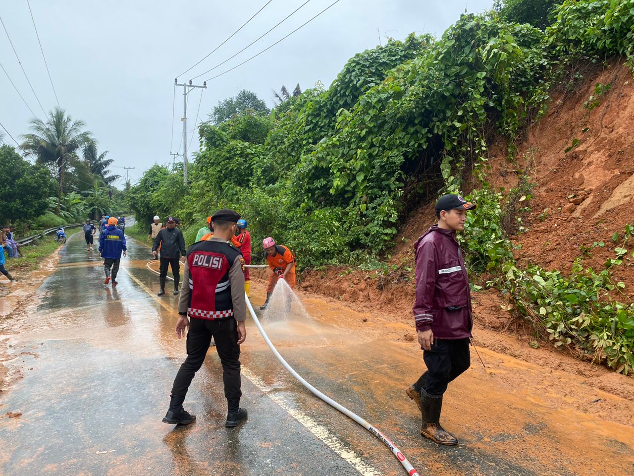 Dengan sigap, anggota Satuan Lalu Lintas dan Satuan Samapta Polres Kotabaru bersama BPBD dan stakeholder terkait dibantu warga sekitar segera bergerak untuk membersihkanan. Berkat kerja cepat mereka, jalan kini dapat dilalui kembali.