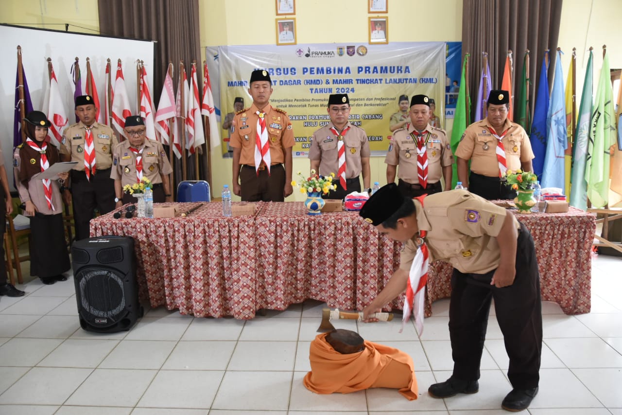 Acara yang mengusung tema “Menciptakan Pemimpin Pramuka yang Kompeten dan Profesional untuk Menghasilkan Tunas Muda Unggul dan Berkarakter” ini resmi dibuka oleh Ka Kwarcab HST Muhammad Anhar yang ditandai dengan pemecahan buah kelapa.