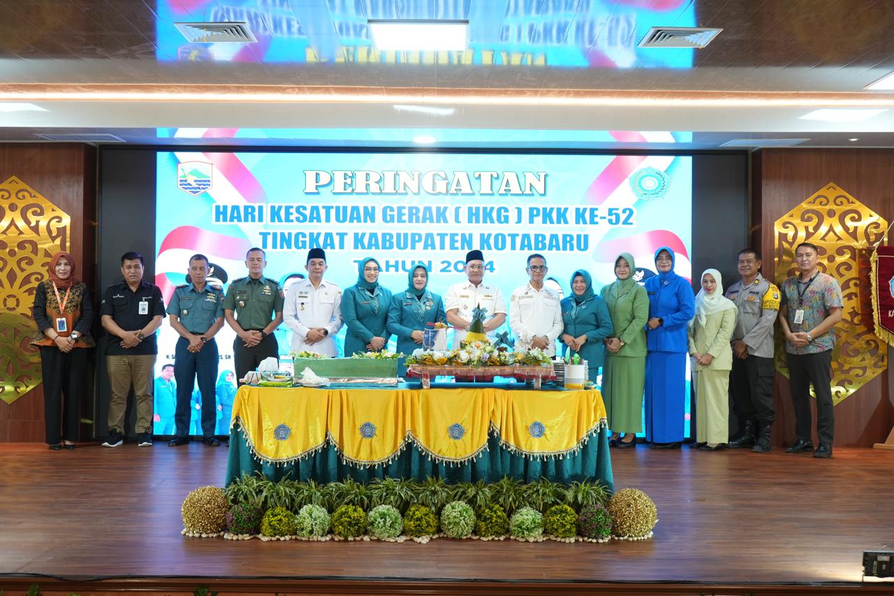 Ketua TP PKK Kotabaru, Hj Fatma Idiana mengatakan, Peringatan Hari Kesatuan Gerak (HKG) PKK Tahun 2024 dengan tema “Bergerak Bersama Menuju Keluarga Sejahtera Bersama Indonesia Maju” Sebagai momentum untuk menggelorakan 10 Program Pokok PKK sesuai dengan prioritas program sebagaimana yang telah ditetapkan berdasarkan permasalahan yang dihadapi dan potensi yang dimiliki, serta sebagai sarana publikasi yang efektif terhadap Gerakan PKK