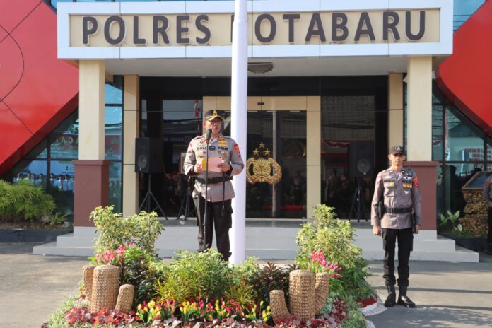 Kegiatan ini dipimpin oleh Kapolres Kotabaru, AKBP Doli M. Tanjung, S.I.K., dihadiri oleh Pejabat Jajaran Utama (PJU) Polres Kotabaru, Kapolsek Jajaran, serta personel Polres Kotabaru.