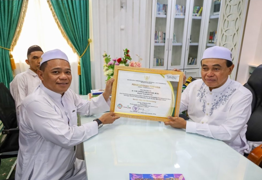 Bupati Zairullah Azhar di dampingi Kepala Dinas Pemberdayaan Masyarakat dan Desa (PMD) Samsir, Senin (26/8/2024) di Batulicin. Mengatakan bersyukur dan menymabut baik dengan penghargaan yang di berikan oleh Kemendes PDTT tersebut.