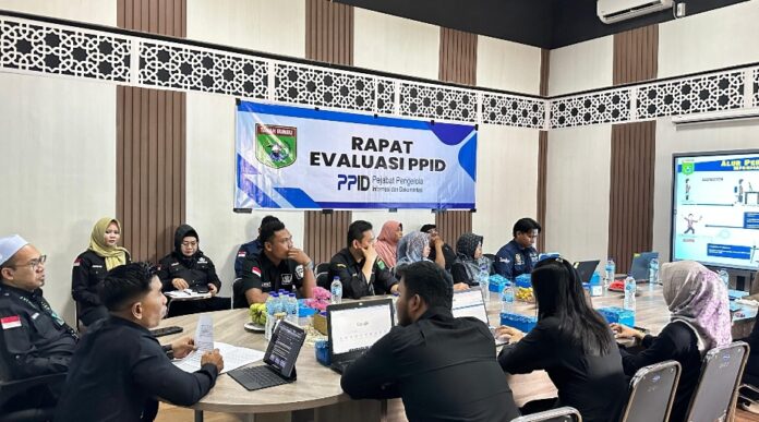 Rapat Evaluasi PPID di buka Kepala Dinas Kominfosp Al Husain Mardani. Melalui Kepala Bidang Informasi dan Komunikasi Publik (IKP), Akhmad Salehuddin.