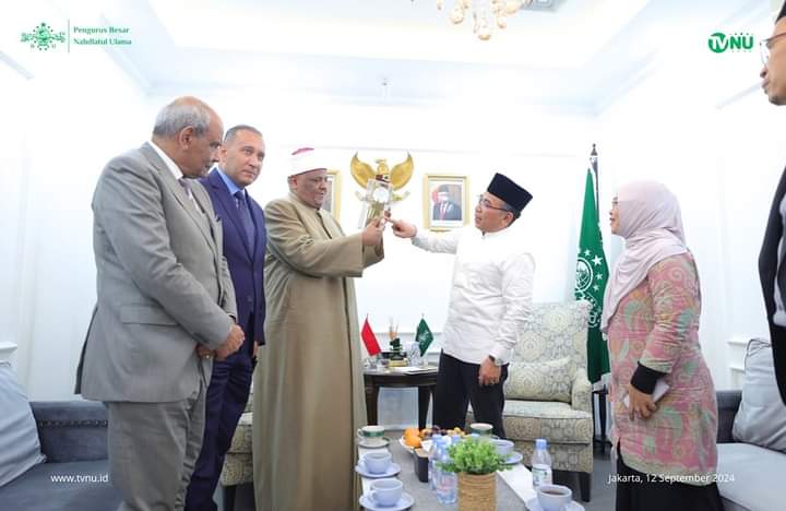 Infosatu.cloud, Jakarta – Ketua Umum PBNU KH Yahya Cholil Staquf (Gus Yahya) menerima kunjungan Ketua Organisasi Internasional Alumni Al Azhar Pusat (OIAA) Syekh Abbas Shouman, di Lt. 3 Gedung PBNU, Jl. Kramat Raya No. 164, Jakarta Pusat, pada Kamis (12/9/24).