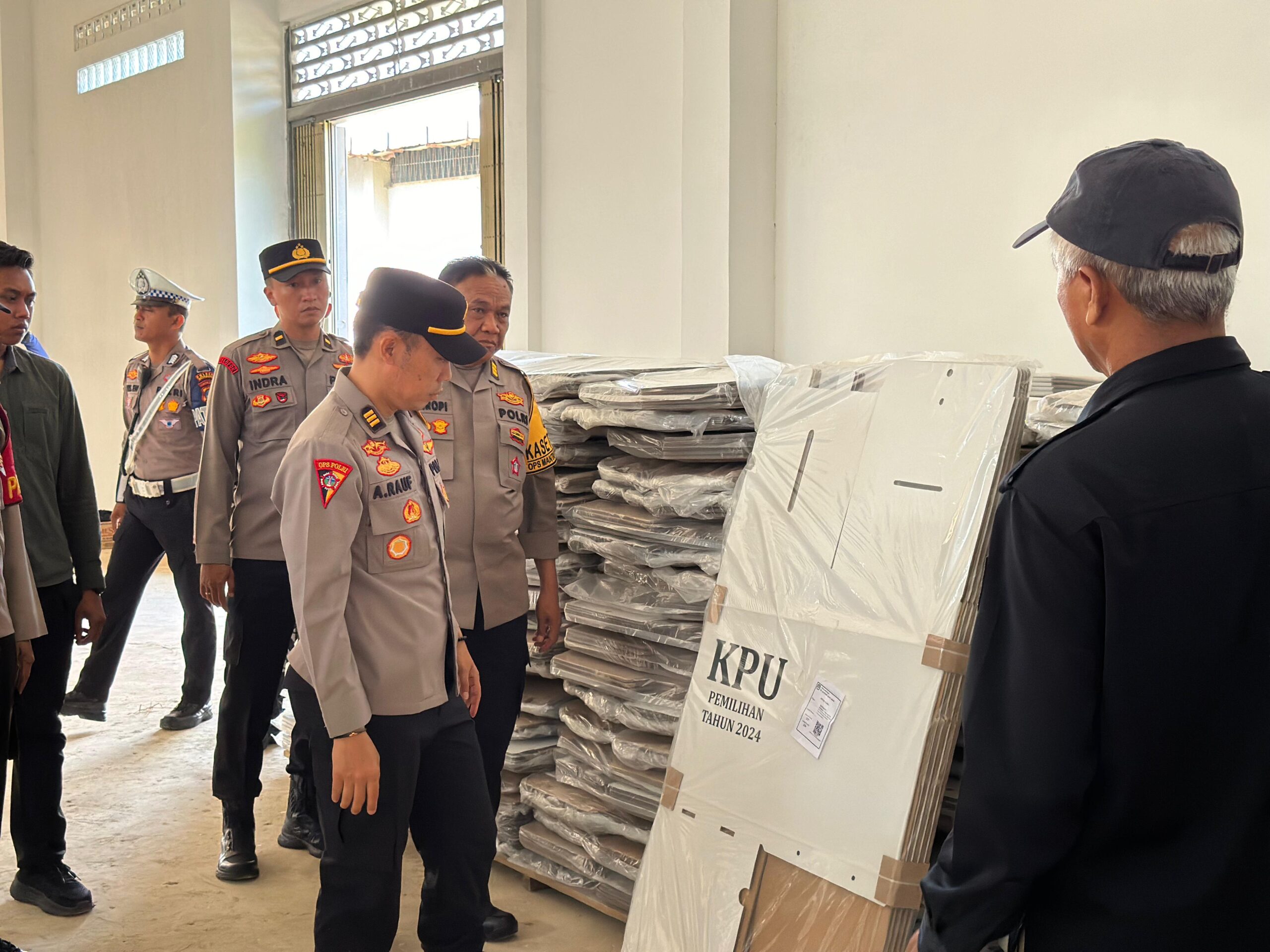 “Menyampaikan arahan kepada petugas yang melaksanakan pengecekan untuk memastikan semua logistik tersimpan dengan baik dan aman. Beliau menekankan pentingnya pengawasan ketat agar logistik Pilkada tetap dalam kondisi prima hingga waktu pemilihan tiba.