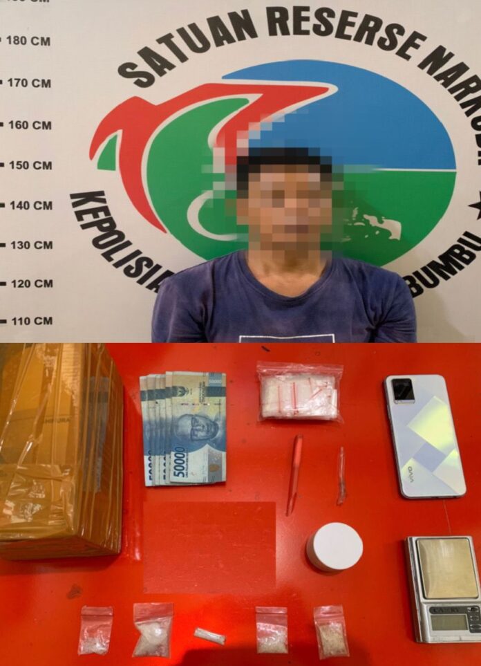 “Pada saat dilakukan penggeledahan di rumah tersangka ditemukan barang bukti 5 paket sabu berat bersih 6,45 gram, 1 buah timbangan digital, ⁠1 (satu) bungkus plastik klip, 1 unit HP, ⁠1 buah pipet dan ⁠Uang tunai Rp. 300.000