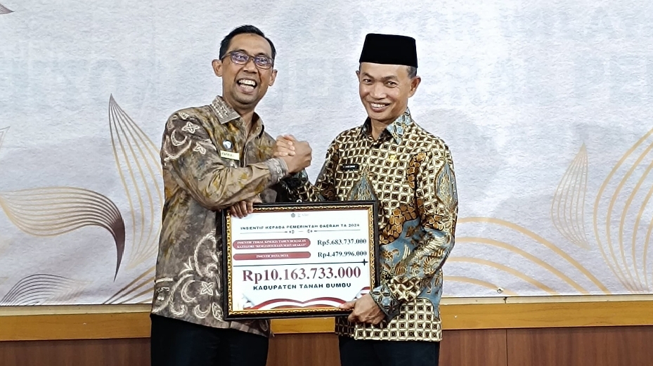 Total insentif yang di serahkan kepada pemerintah daerah Kabupaten Tanah Bumbu sebesar Rp10.163.733.000.