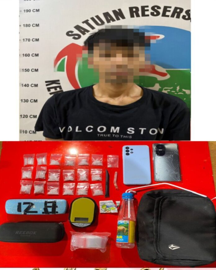 “Pada saat dilakukan penggeledahan di rumah tersangka ditemukan barang bukti 19 (sembilan belas) paket  sabu berat  21, 74 gram dan 1  unit timbangan digital.