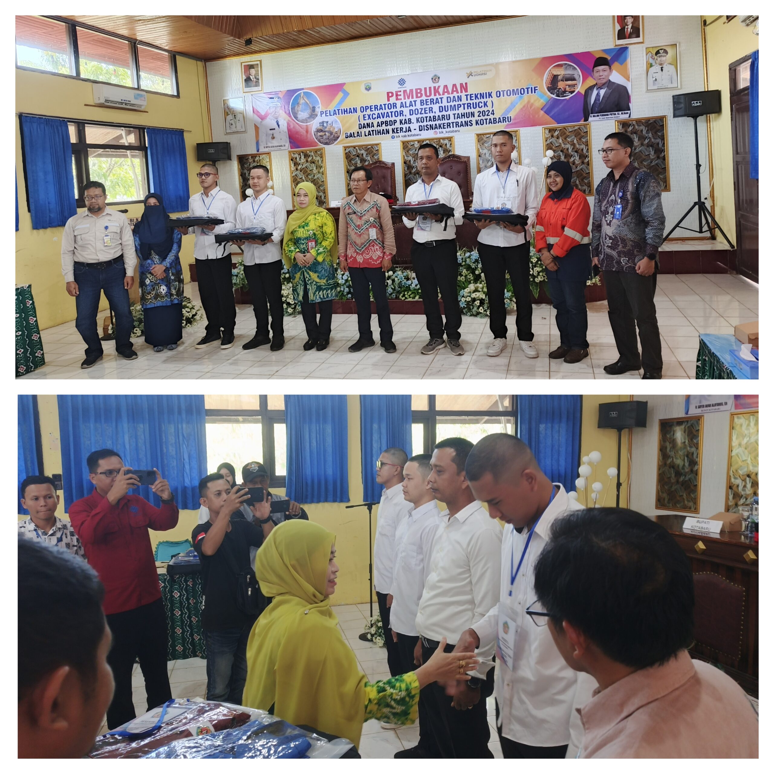 Acara dihadiri, Staf Ahli Bupati Bidang Kemasyarakatan dan SDM Kotabaru, Plt Kadis Disnakertrans Kotabaru, Perusahaan dan peserta Pelatih Operator Alat Berat dan Teknik Otomotif (Excavator, Dozer, Dumptruck).