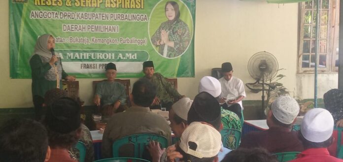 Infosatu.cloud, Purbalingga – Kegiatan Reses Tahun 2024 yang dilaksanakan oleh anggota DPRD Purbalingga dari Partai Persatuan Pembangunan,Lia Mahfuroh,A.Md yang digelar di Desa Cipawon Kecamatan Bukateja , Kab. Purbalingga Jawa Tengah. Acara dimulai dengan lagu kebangsaan Indonesia Raya dan sambutan dari Ketua PAC PPP Bukateja, Kyai Ali Muhtarom dan langsung dengan acara Reses dan Serap aspirasi warga.