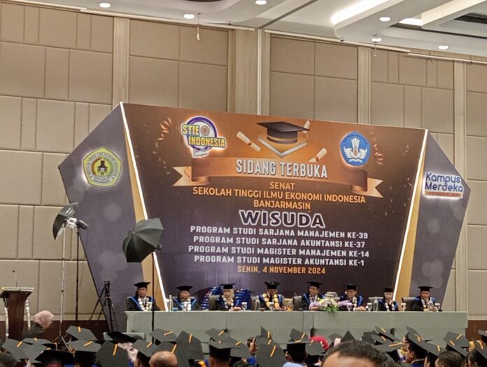 Infosatu.cloud, Banjarmasin – Wisuda Sarjana dan Magister dengan jumlah 315 orang Wisudawan Wisudawati STIE Indonesia Banjarmasin, semakin lengkap dengan telah diterimanya SK dari Kemendikbud Ristek RI perubahan bentuk Sekolah Tinggi ini menjadi Institut Bisnis dan Teknologi Kalimantan (IBITEK). Bahkan kata Ketua STIE Indonesia Banjarmasin Dr Yanuar Bachtiar SE MSi, yang saat Wisuda, Senin (4/11/2024) dikukuhkan sebagai Rektor IBITEK, semua Akreditasi Baik Sekali diterima pihaknya dari penilaian Lembaga Akreditasi Mandiri Ekonomi Bisnis Akuntansi (Lamemba) juga sudah bisa dicapai. Sampai sekarang lulusan STIE Indonesia Banjarmasin mencapai hampir 10 ribuan atau 9.254 orang.