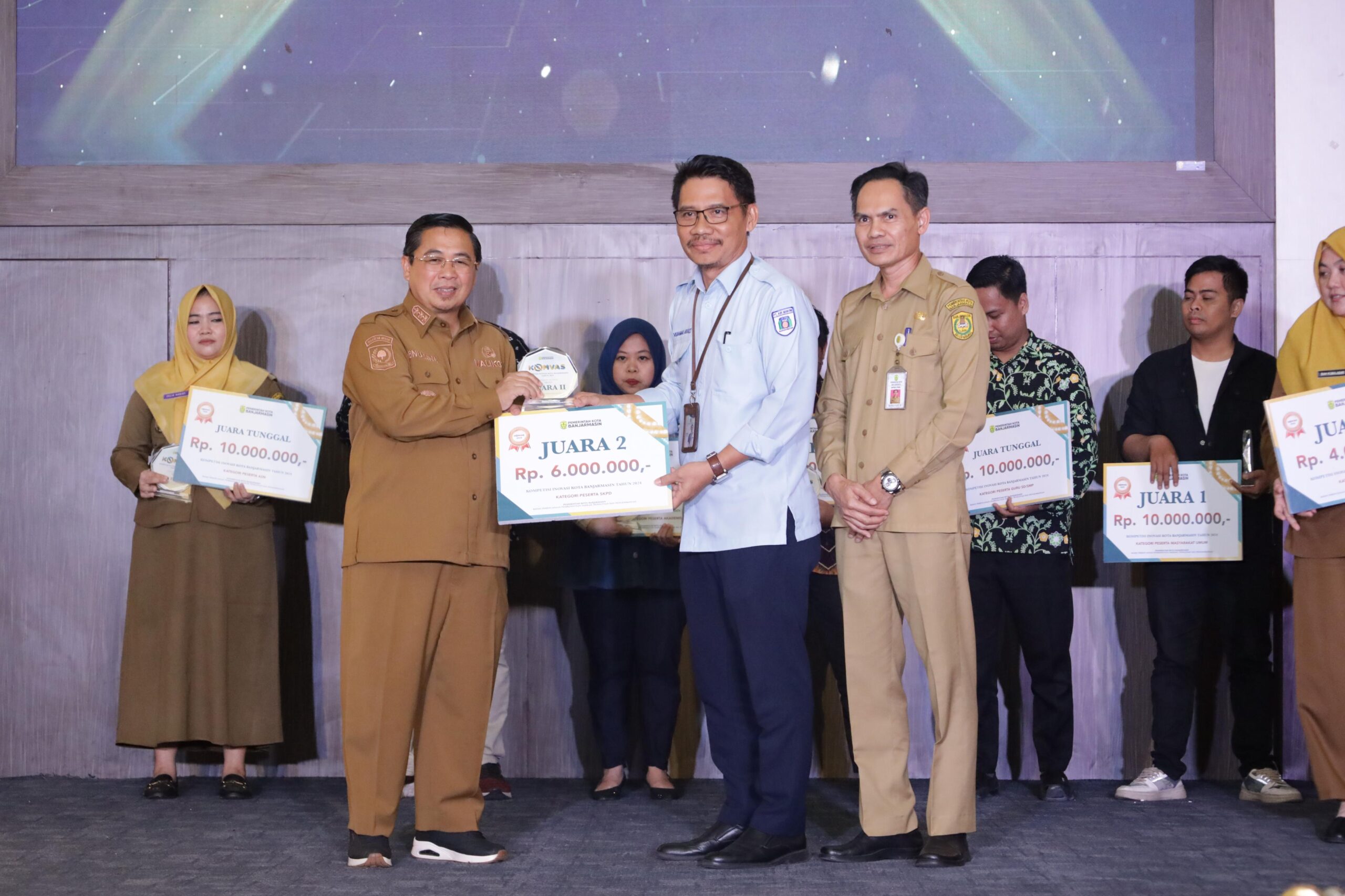 Ibnu Sina turut didampingi oleh Kepala Bappeda Litbang Ahmad Syauqi menyerahkan hadiah berupa uang pembinaan dan piagam penghargaan kepada para pemenang.