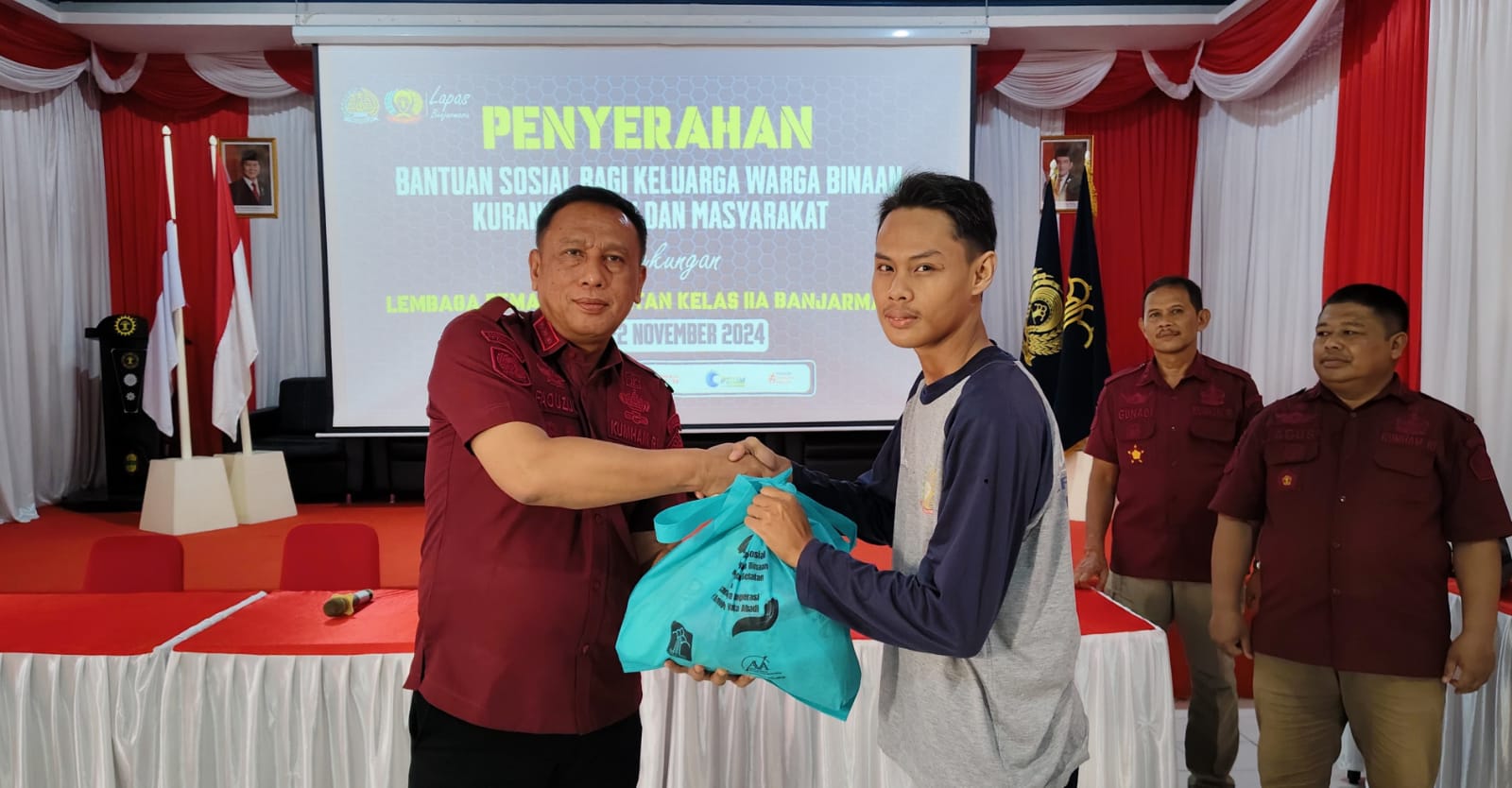 Infosatu.cloud, Banjarmasin – Lembaga Pemasyarakatan (Lapas) Banjarmasin, melalui Kanwil Kemenkumham Kalimantan Selatan, telah melaksanakan kegiatan pembagian bantuan sosial kepada keluarga Warga Binaan Pemasyarakatan (WBP) dan masyarakat sekitar. Kegiatan yang diadakan di Aula Lapas Banjarmasin ini merupakan bagian dari program akselerasi Menteri Hukum dan HAM dalam mendukung kesejahteraan masyarakat.