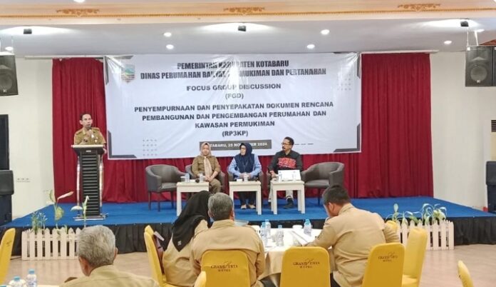 Infosatu.cloud – Dinas Perumahan Rakyat Permukiman dan Pertanahan Kabupaten Kotabaru menggelar Focus Group Discussion (FGB) Penyusunan Dokumen Rencana Pembangunan dan Pengembangan Perumahan dan Kawasan Permukiman (RP3KP), Senin (26/11/24) di Hotel Grand Surya, Jl. Suryagandamana No.10, Dirgahayu, Kec. Pulau Laut Utara, Kab. Kotabaru, Kalimantan Selatan.