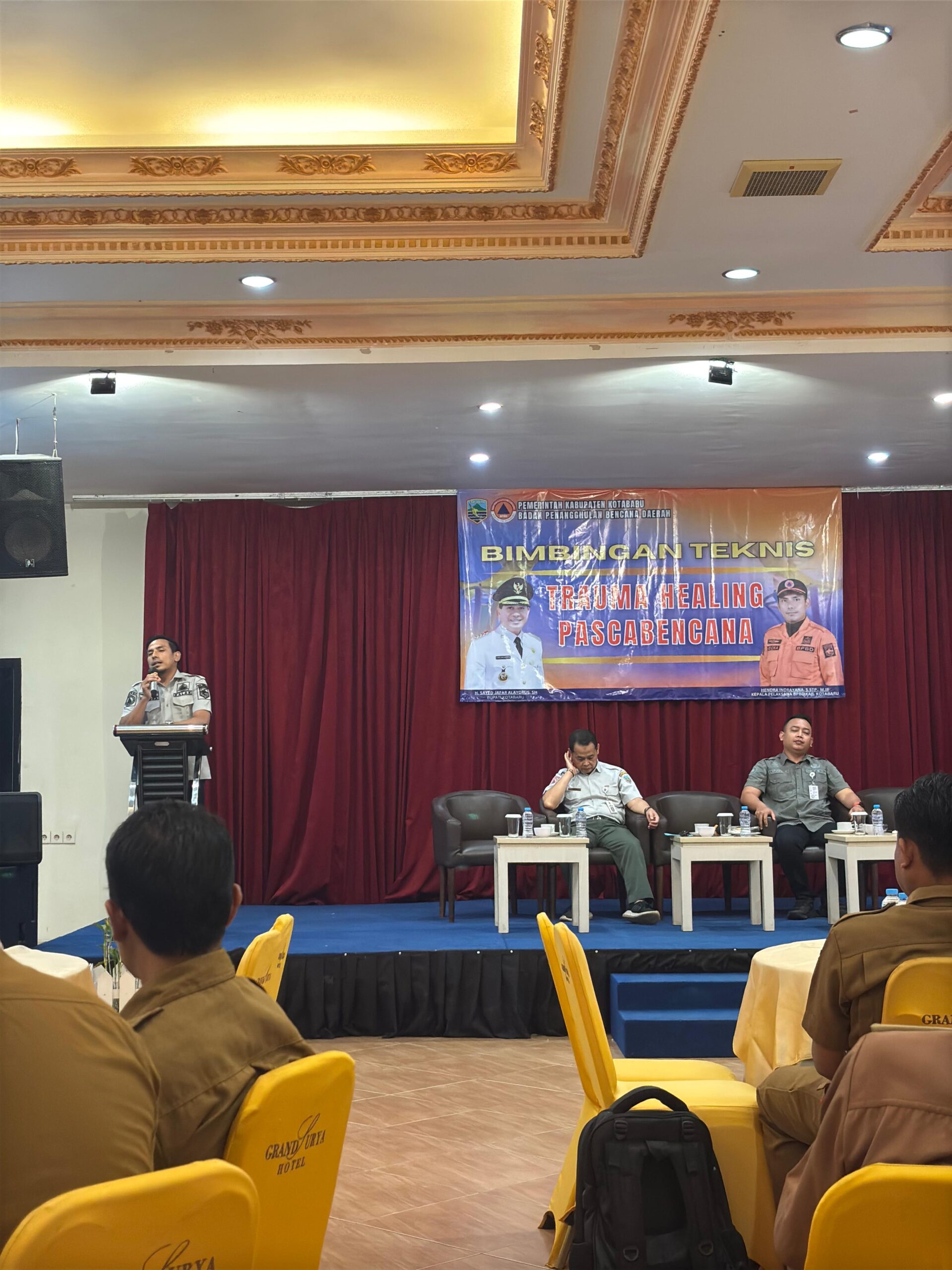 Kepala Pelaksana Badan Penanggulangan Bencana Daerah Kotabaru Hendra indrayana, S. Stp, M. Ip mengatakan,”Kegiatan hari ini BPBD Kotabaru menggelar Bimbingan Teknik Trauma Healing Pascabencana. kita menyampaikan pelatihan kepada kawan Camat dan Kepala desa. Kabupaten Kotabaru memiliki kondisi alam yang sangat bervariasi, terdiri dari perpaduan tanah pengunungan, daerah pantai, daerah daratan, daerah perairan dan pulau – pulau kecil.