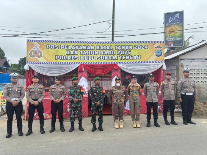 Infosatu.cloud, Barabai – Dalam rangka menjaga keamanan dan ketertiban masyarakat selama perayaan Natal 2024 dan Tahun Baru 2025, Kodim 1002/HST, Polres HST, dan Satuan Polisi Pamong Praja Kabupaten Hulu Sungai Tengah telah mengerahkan personel gabungan untuk melakukan pengamanan di berbagai titik strategis, terutama di Pos Pelayanan Burung Anggang Barabai.Minggu (22/12).