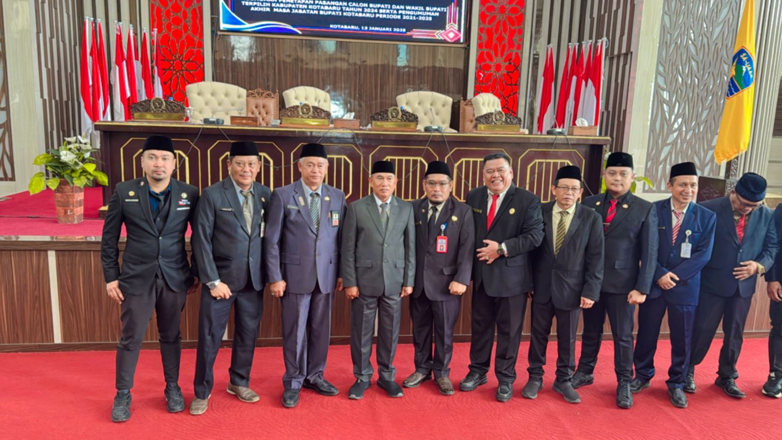 Turut hadir Unsur Forkopimda, Bupati dan Wakil Bupati terpilih, Pj. Sekretaris Daerah Kotabaru, Asisten dan Staf Ahli Bupati Kotabaru, serta SKPD Lingkup Kotabaru.