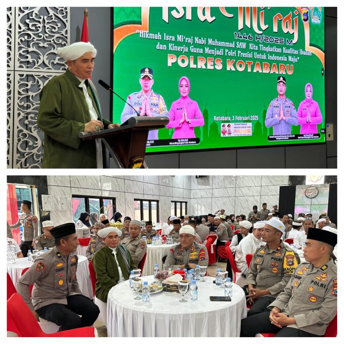 Infosatu.cloud – Memperingati peristiwa agung Isra Mi’raj Nabi Besar Muhammad SAW, Polres Kotabaru menggelar acara peringatan Isra Mi’raj pada Senin, 3 Februari 2025, pukul 08.30 WITA di Aula Sanika Satyawada Polres Kotabaru.