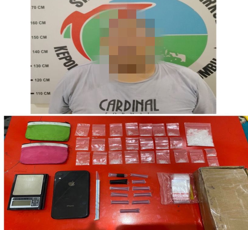 “Saat dilakukan penggeledahan didapati barang bukti Barang bukti 25 paket narkotika jenis sabu berat 14,46 gram, 1 bungkus plastik klip bening, 1 buah timbangan digital dan 1 buah handphone di rumah tersangka.