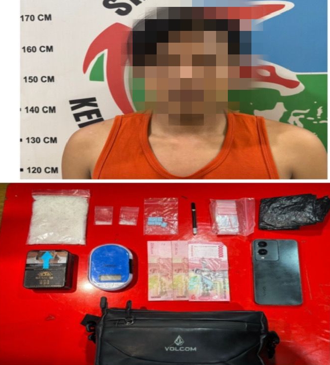 “Pelaku diduga sedang akan mengantar narkotika jenis ekstasi kepada pelanggannya, yang mana saat dilakukan penggeledahan ditemukan 1 paket kecil narkotika jenis sabu didalam tas slempang warna hitam, 1 paket kecil narkotika jenis sabu didalam sebuah wadah kaleng di dalam ruang tamu dan 1 paket besar narkotika jenis sabu serta 6 butir narkotika jenis ekstasi warna biru berlogo RR dan 1 buah timbangan digital didalam kamar tersangka.
