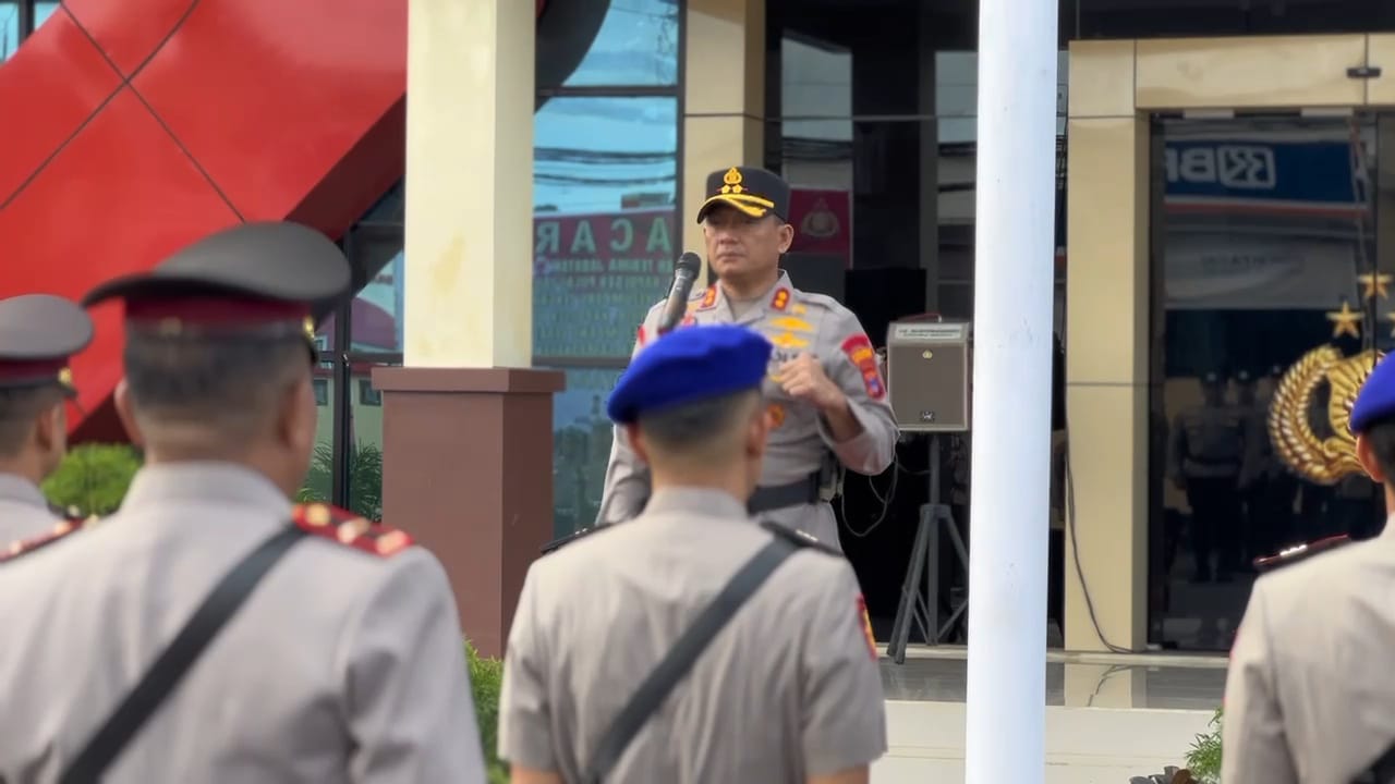Upacara khidmat yang berlangsung di Lapangan Apel Mapolres Kotabaru ini dipimpin langsung oleh Kapolres Kotabaru, AKBP Doli M. Tanjung, S.I.K., serta dihadiri oleh Pejabat Utama (PJU), para Kapolsek jajaran, perwira, dan personel Polres Kotabaru.