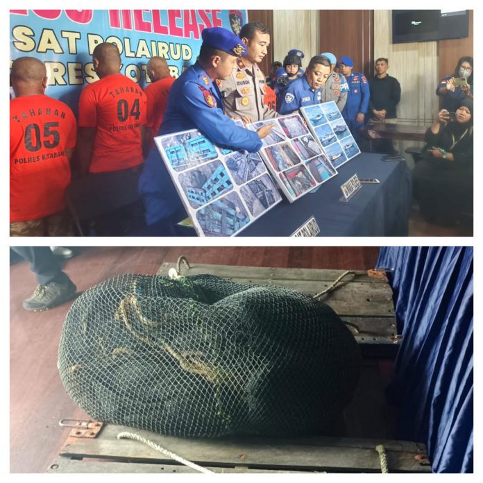 Infosatu.cloud, Kotabaru – Polres Kotabaru bersama dengan Sat Polairud melakukan kegiatan press release tentang pengungkapan kasus penangkapan ikan di wilayah perairan Kotabaru yang tidak memenuhi syarat atau menggunakan lamparan dasar (pukat ikan) pada Selasa (18/3/2025) di Lobi Utama Polres Kotabaru.