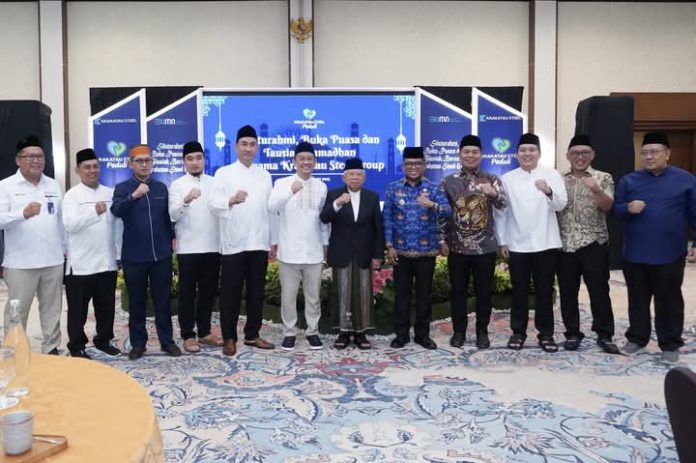 Infosatu.cloud, Cilegon – PT Krakatau Steel Cilegon Banten pada Selasa (18/3) gelar buka bersama dengan pemateri Tausiyah Ramadan Bareng KH Ma’ruf Amin. “Alhamdulillah, bisa silaturahmi dan berbuka puasa bersama di PT Krakatau Steel, Cilegon. Kita doakan semoga perusahaan BUMN ini bisa terus sukses dan berkontribusi untuk mensejahterakan masyarakat Indonesia,” kata KH Maruf Amin dihadapan direksi pimpinan dan karyawan PT Krakatau Steel.