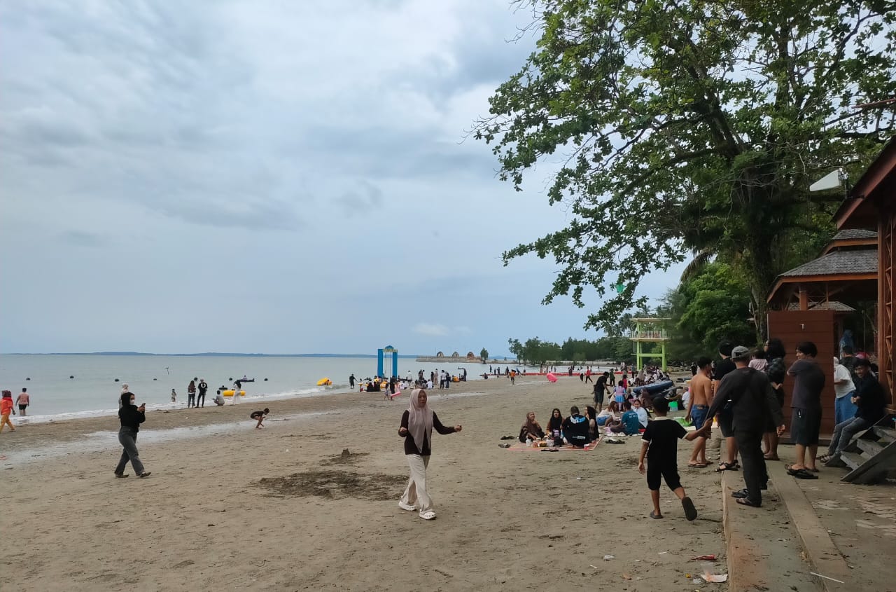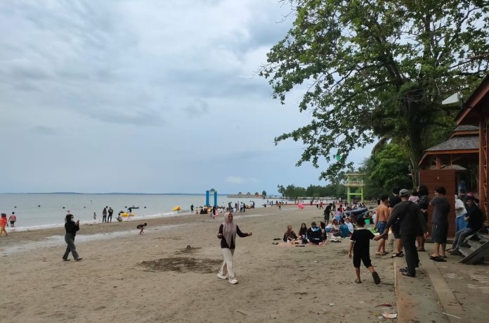 Infosatu.cloud – Hari kedua Lebaran Idul Fitri 1446 H/2025, Kawasan Wisata Pantai Gedambaan Kotabaru mulai di padati, Senin (1/04/2025).