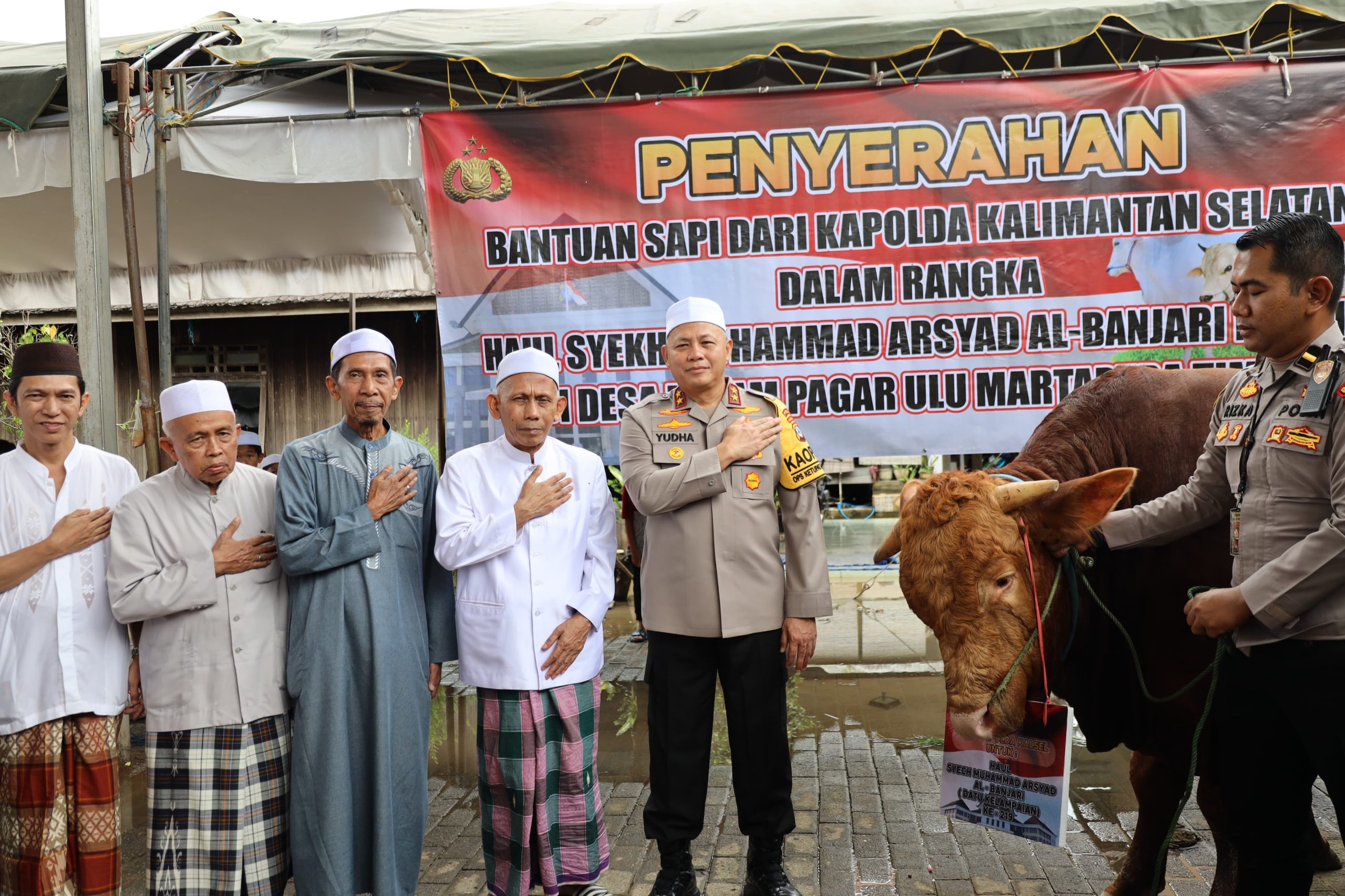 Infosatu.cloud, Martapura – Kapolda Kalimantan Selatan, Irjen Pol Rosyanto Yudha Hermawan, S.I.K., S.H., M.H. menyerahkan 5 ekor sapi dalam rangka peringatan Haul Syekh Muhammad Arsyad Al Banjari ke-219, Kamis (03/4/25) di Desa Dalam Pagar, Kecamatan Martapura Timur, Kabupaten Banjar, Kalimantan Selatan.