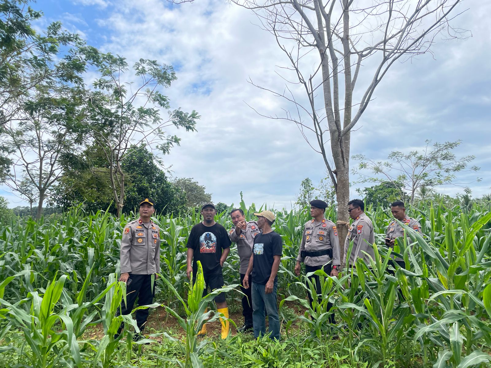 Infosatu.cloud – Wakapolres Kotabaru dengan Tim Gugus Tugas Ketahanan Pangan Polres Kotabaru meninjau perkembangan tanaman jagung di lahan Desa Sarang Tiung, Kecamatan Pulau Laut Sigam, Kabupaten Kotabaru, Selasa (8/4/25).