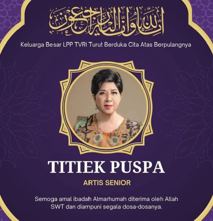 Infosatu.cloud – Dunia Entertaiment tengah berduka, dimana Penyanyi legendaris Titiek Puspa dikabarkan meninggal dunia pukul 16.25 WIB. Hal tersebut, dibenarkan oleh Mia manajer Titiek Puspa.