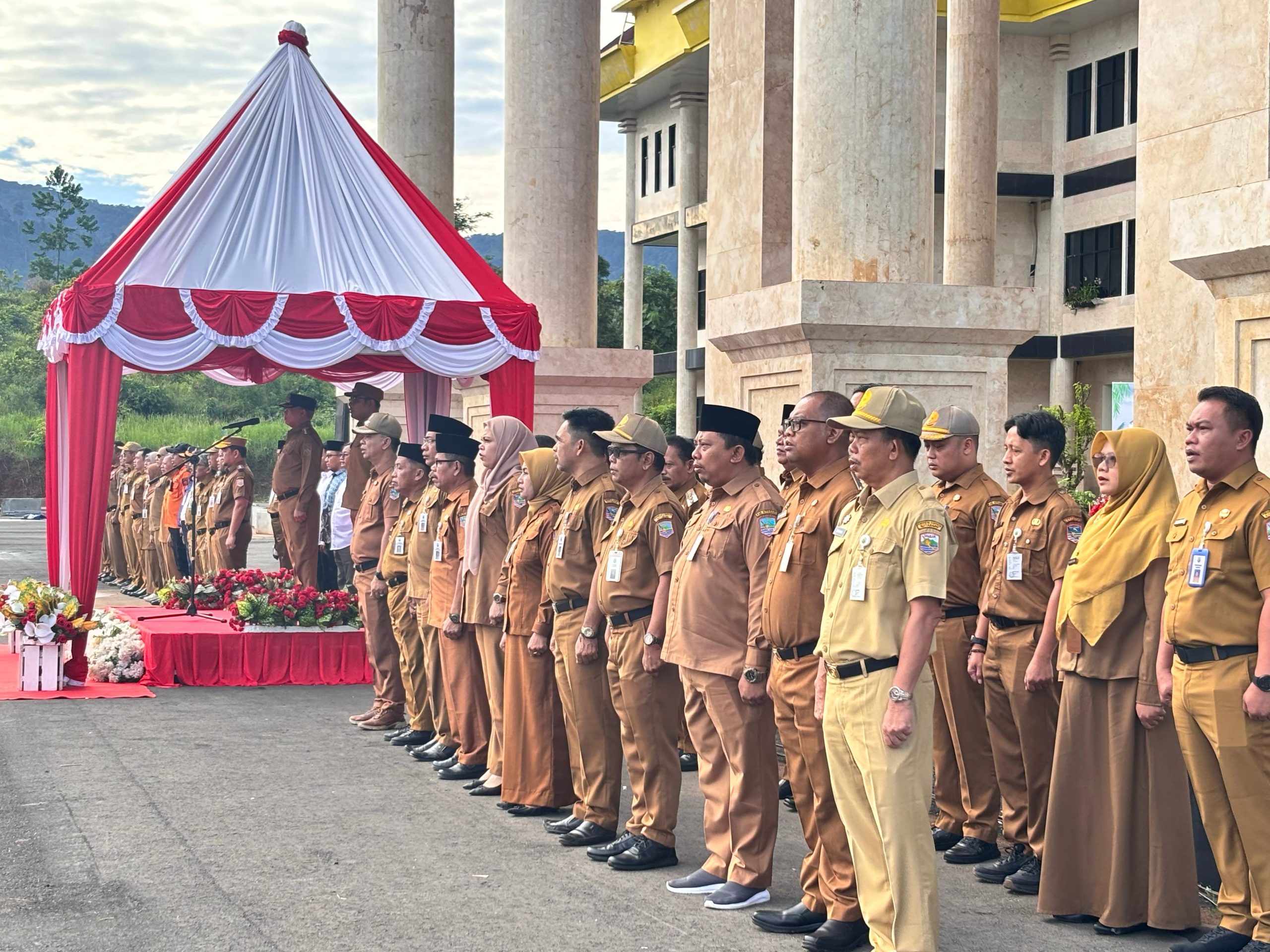 Infosatu.cloud – Bupati Kotabaru memimpin Apel Gabungan pasca libur  Hari Raya Idul Fitri 1446 Hijriah yang berlangsung di Halaman Kantor Bupati di Komplek Perkantoran Sebelimbingan, Senin (14/04/25) pagi.