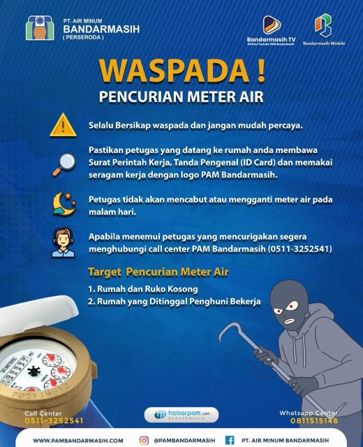 Irwan juga menghimbau kepada pelanggan agar slalu waspada jika tiba-tiba ada yang mengaku sebagai petugas PAM Bandarmasih ingin mengganti meter air, minta untuk diperlihatkan surat tugasnya.