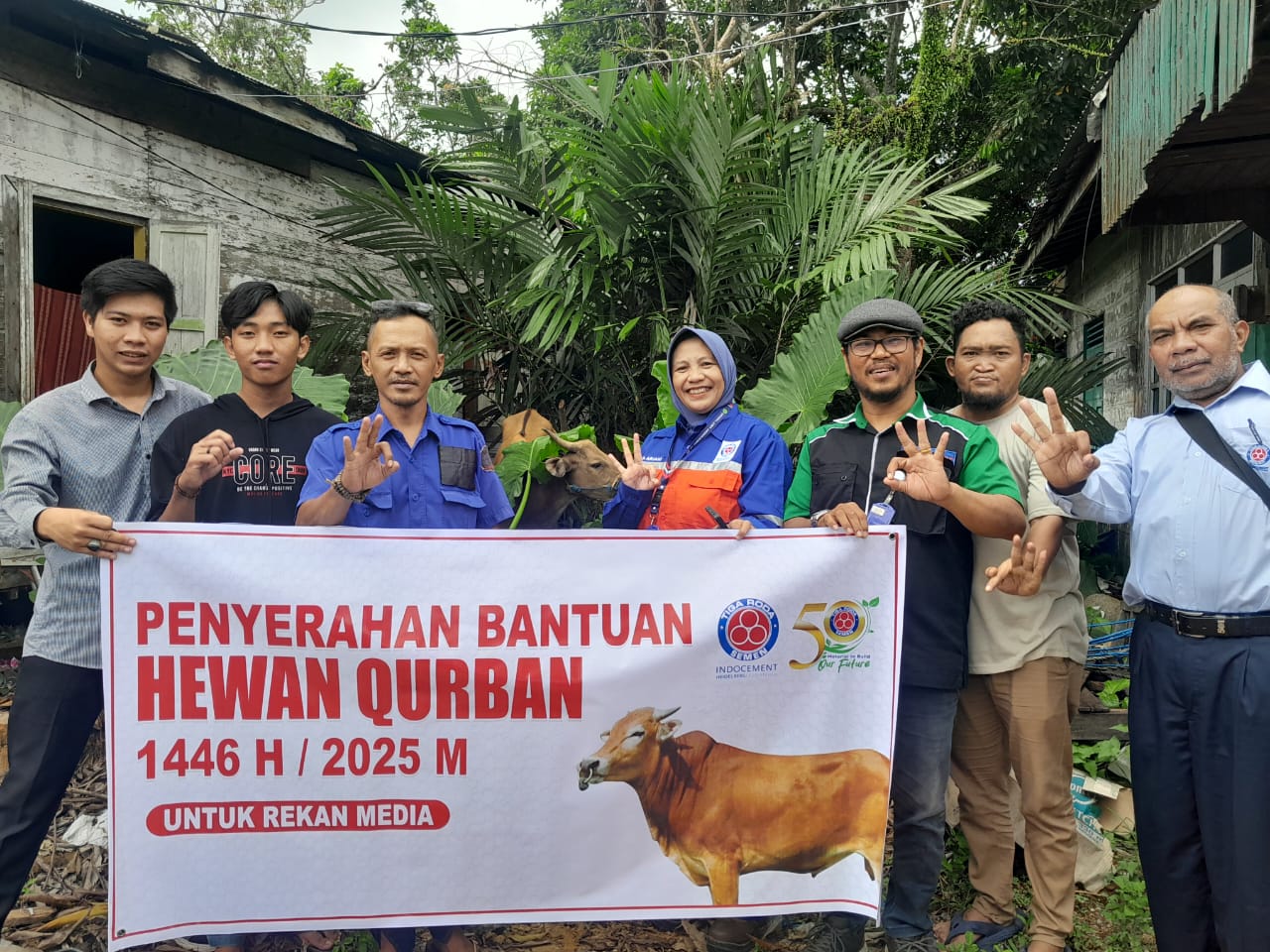 Infosatu.cloud – Dalam rangka Hari Raya Idul Adha 1446 H, PT Indocement Tunggal Prakarsa Tbk. (Indocement) kembali menyalurkan bantuan puluhan hewan kurban untuk masyarakat desa binaan dan mitra lainnya, salah satunya kepada jurnalis Kotabaru, Selasa (3/6/2025).