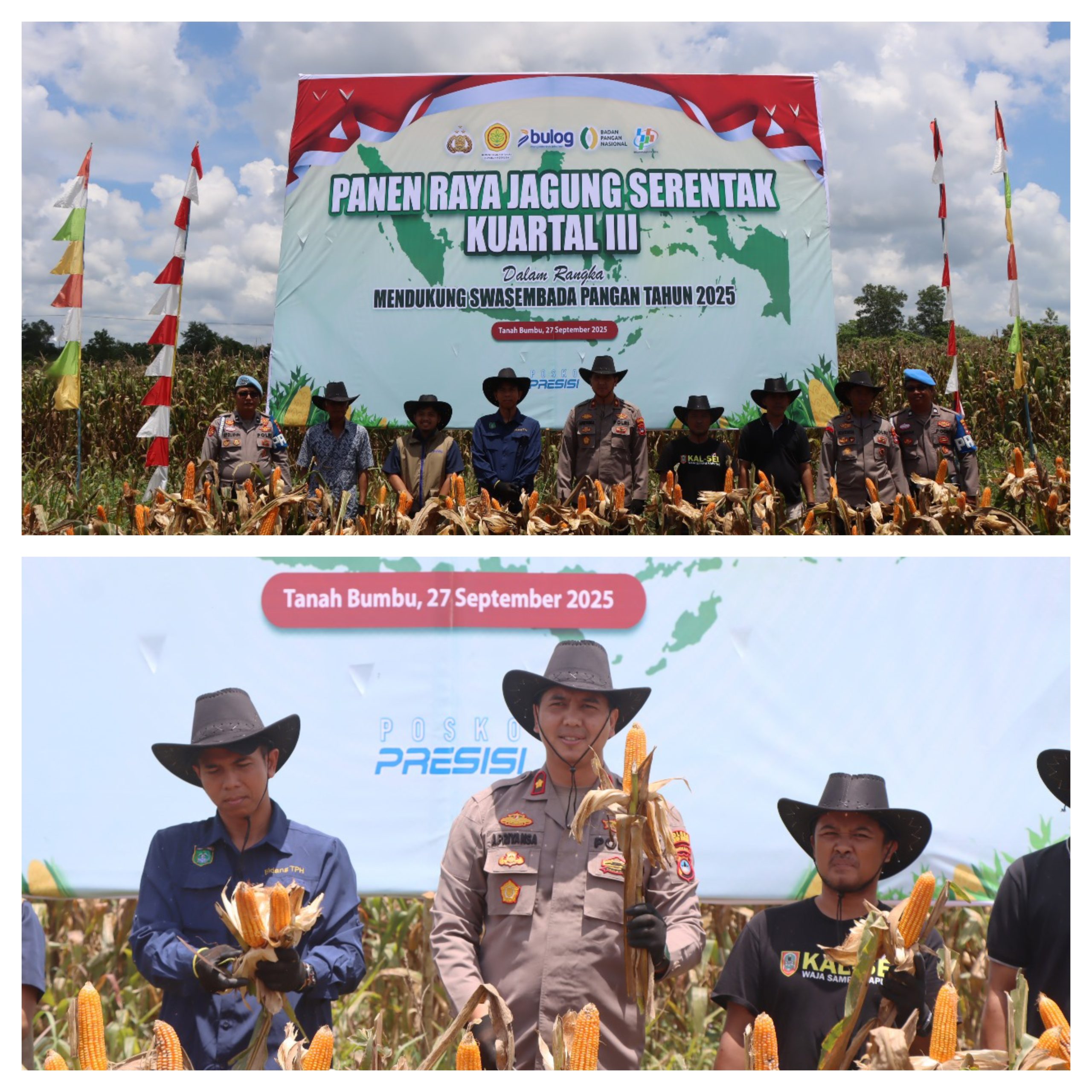 Infosatu.cloud, Tanah Bumbu – Polres Tanah Bumbu melaksanakan panen raya jagung serentak kuartal III yang bertempat di Kelurahan Gunung Tinggi, Kecamatan Batulicin, Kabupaten Tanah Bumbu pada Sabtu (27/9/2025).