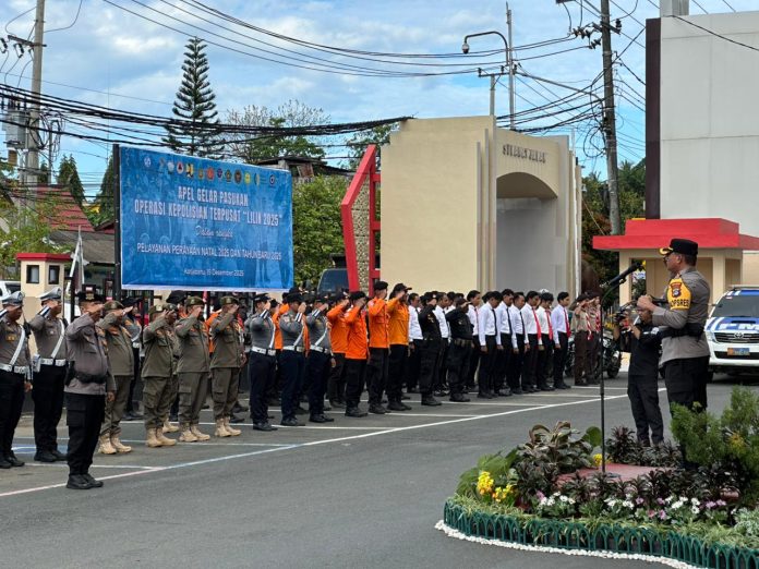 Infosatu.cloud – Polres Kotabaru Polda Kalimantan Selatan menggelar Apel Gelar Pasukan Operasi Kepolisian Terpusat “Lilin Intan Tahun 2025” dalam rangka memastikan kesiapan pengamanan perayaan Natal 2025 dan Tahun Baru 2026. Kegiatan tersebut berlangsung di Lapangan Apel Polres Kotabaru, Jalan P. Diponegoro No. 01, Desa Baharu Utara, Kecamatan Pulau Laut Sigam, Kabupaten Kotabaru, Jumat (19/12/2025) pukul 16.00 WITA.