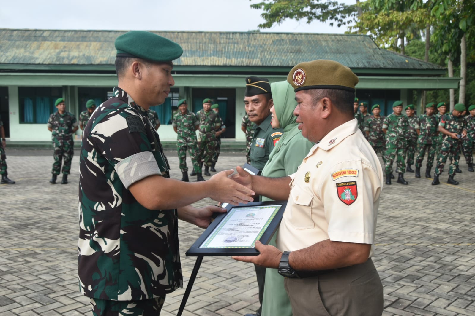 Pada kesempatan tersebut, Dandim 1002/HST secara khusus menyampaikan terima kasih dan penghargaan setinggi-tingginya kepada Kapten Czi Mukhamad Singgih dan PNS Golongan III/a Akhmad Baihaqi beserta keluarga atas pengabdian yang telah diberikan kepada Kodim 1002/HST.