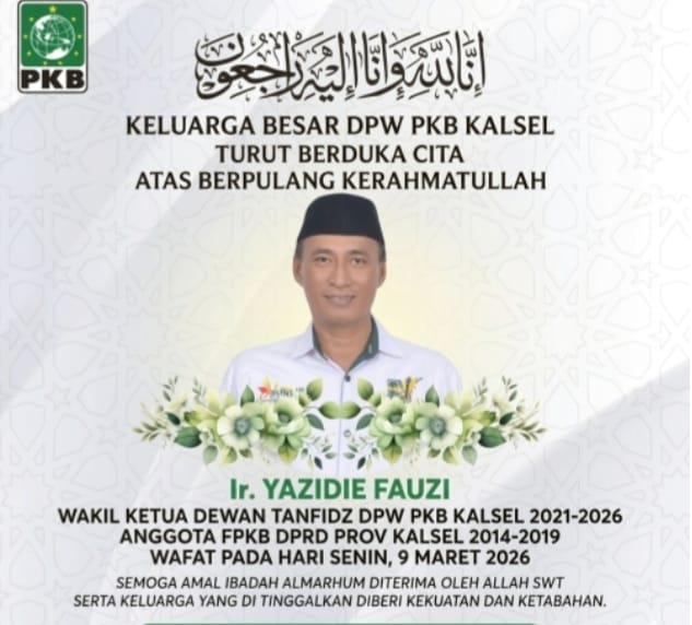 Infosatu.cyou – Kabar wafatnya tokoh muda Kalimantan Selatan, Yazidie Fauzi, pada Senin (9/3/2026), menyisakan duka mendalam bagi banyak pihak. Ucapan belasungkawa datang dari berbagai kalangan, mulai dari tokoh politik, kader partai, hingga masyarakat yang mengenal kiprah almarhum.
