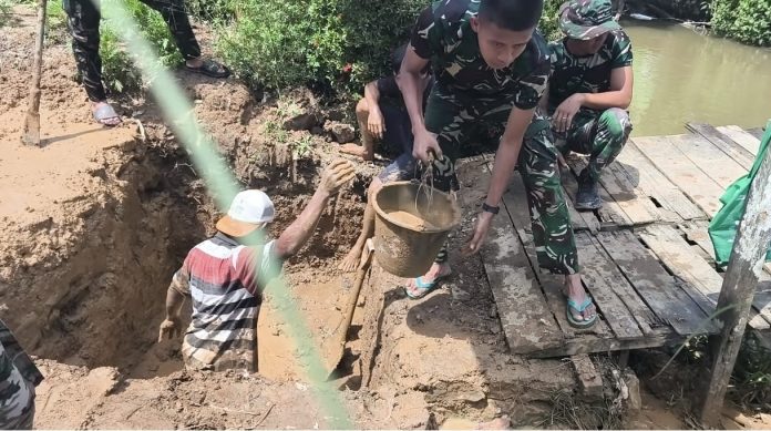 Sinergi TNI-Rakyat, Pengerjaan Abutmen Jembatan Garuda Dikebut BAR