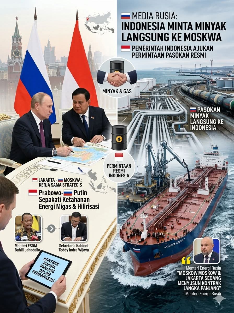 Infosatu.cyou, Rusia — Pemerintah Indonesia resmi mengajukan permintaan pasokan minyak kepada Rusia sebagai langkah strategis memperkuat ketahanan energi nasional di tengah dinamika global.